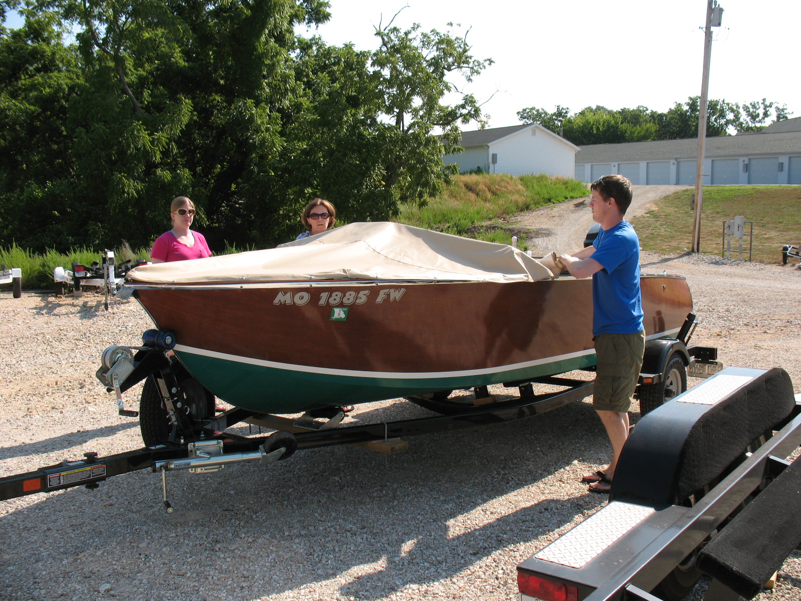 The Gathering was a 7 hour drive from St. Louis and it trailered with no problems. We had a floating cabin at the marina so we could park T&T right outside our front door. Very convenient for a weekend of boating with fellow builders. Here's the eponymous boat parked at G6.